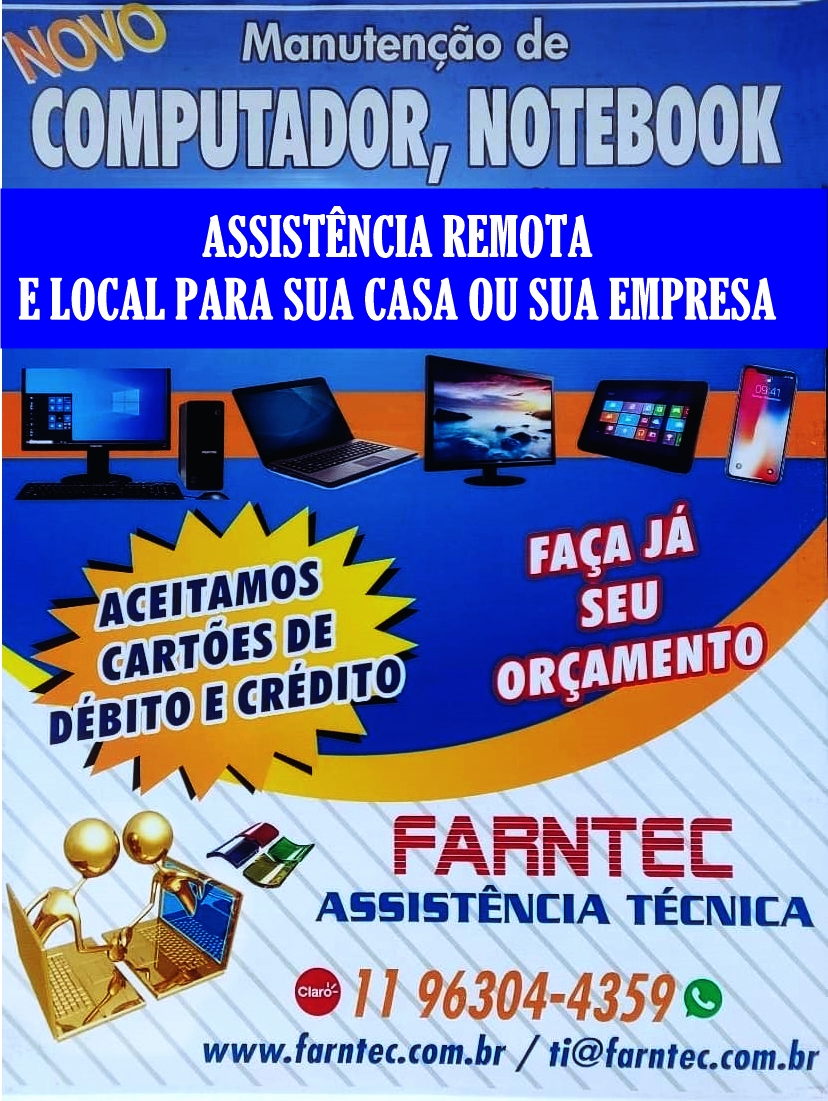 FARNTEC - Soluções em Tecnologia e Automação A FARNTEC é especializada em manutenção, instalação e suporte de sistemas operacionais, softwares e hardware, além de assistência técnica para smartphones. Com foco na inovação, oferecemos serviços completos de automação para WhatsApp, otimizando a comunicação e os processos das empresas. Nosso compromisso é garantir soluções eficientes e personalizadas para cada cliente, com orçamentos sem compromisso e atendimento de qualidade. Conte com a FARNTEC.